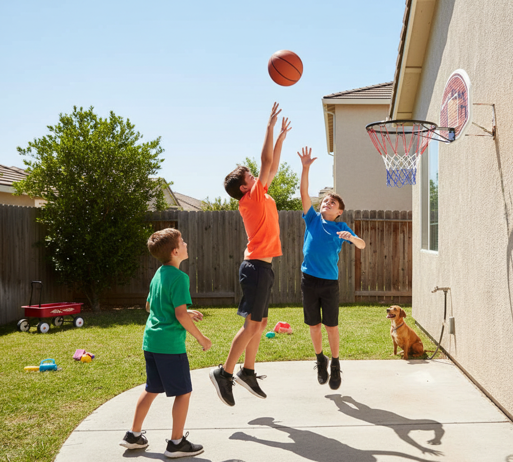 2: HEAVY-DUTY RIM AND ALL-WEATHER NET: The backboard comes with a steel rim that supports dunks, layups, and standard shots. Its weather-resistant nylon net is designed to endure indoor conditions and protected outdoor areas. The rim and net combination ensures long-lasting performance without sagging or rusting. Suitable for kids, teens, and adults, it allows high-intensity play with stability. It also accommodates different types of basketballs, from mini to regulation size.