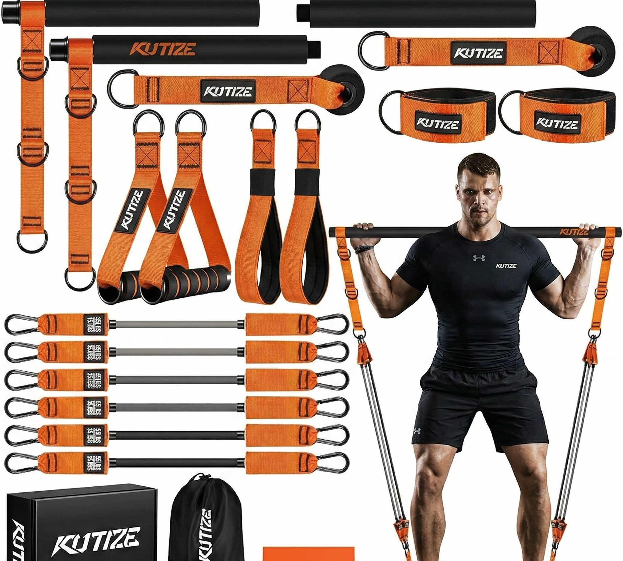 Get full-body strength with the KUTIZE heavy-duty Pilates bar kit. Includes 270lbs resistance bands, 3-section bar, and complete accessories. Portable, compact, and perfect for home or travel workouts.
