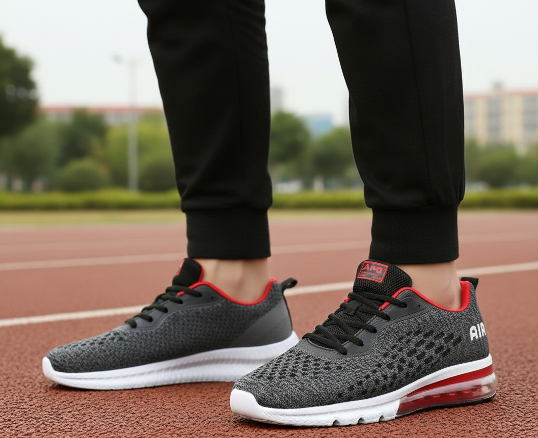 2- Shock absorbing air cushion support: The integrated air cushion works alongside the rubber sole to soften impact with every step. Pressure on the heels, ankles, and knees is reduced during walking and running. Cushioning supports a more ergonomic foot position on hard surfaces. Steps feel lighter and more controlled during movement. Comfort remains stable during longer activity sessions. This helps reduce strain and supports sustained energy throughout the day.