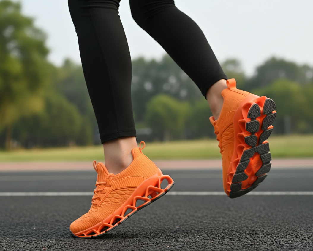 5: HIGH FLEXIBILITY BLADE SOLE: The blade sole flexes smoothly with each step. Energy return supports forward movement without stiffness. Foot fatigue reduces during longer sessions. Movement feels lighter and more controlled. This supports comfort during walking, jogging, and everyday activity.